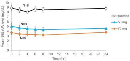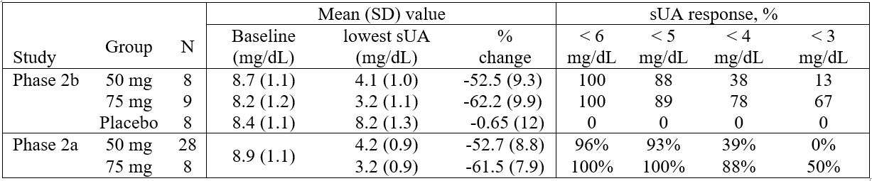 Table 1. Similar response in sUA lowering between gout patients in phase 2b PKPD subset and phase 2a studies.