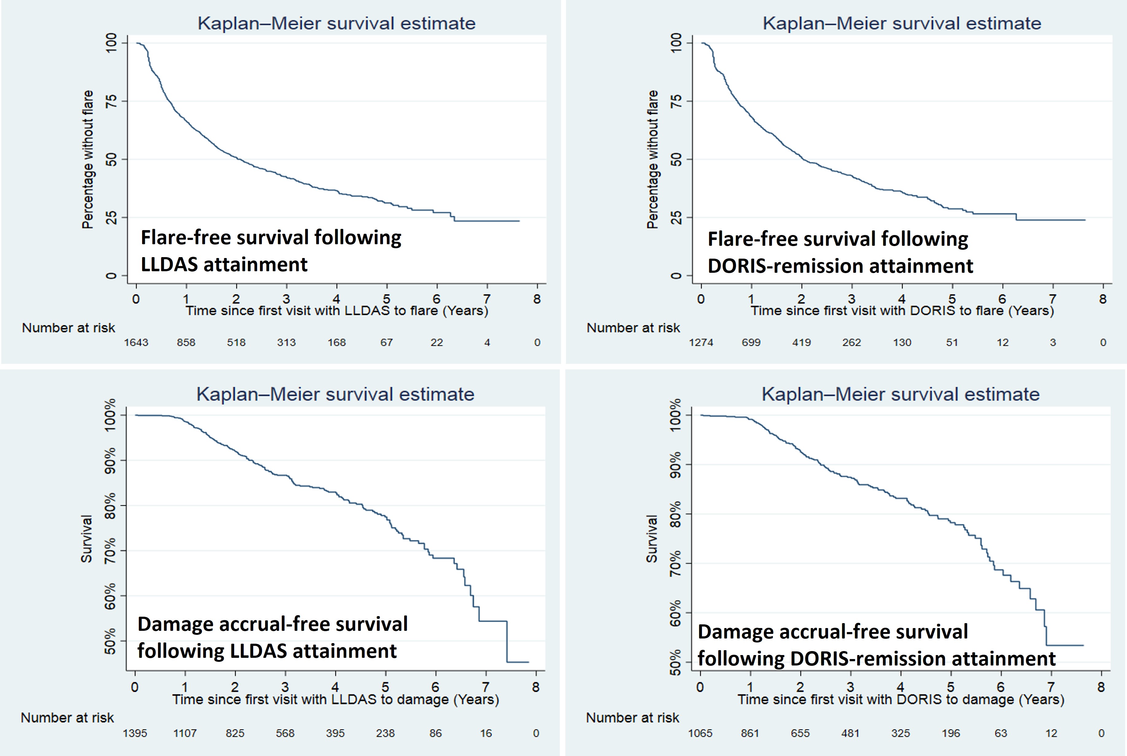Flare-free and damage accrual-free survival after first attainment of LLDAS or DORIS-remission